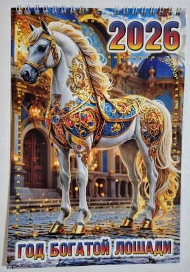 2026 г. Календарь настеннный спираль 25*17см БОГАТАЯ ЛОШАДЬ инд.уп. KNM-06