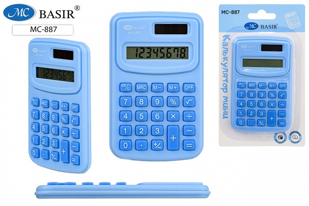 Калькулятор 8 разрядный двойное питание, размер калькулятора 97*60*8 mm, цвет корпуса - синий МС-887/синий/