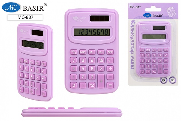 Калькулятор 8 разрядный двойное питание, размер калькулятора 97*60*8 mm, цвет корпуса - фиолетовый МС-887/фиол/