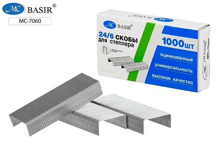 Скобы №24 металлические, серебристые,с заострёнными ножками. МС-7060 1/10