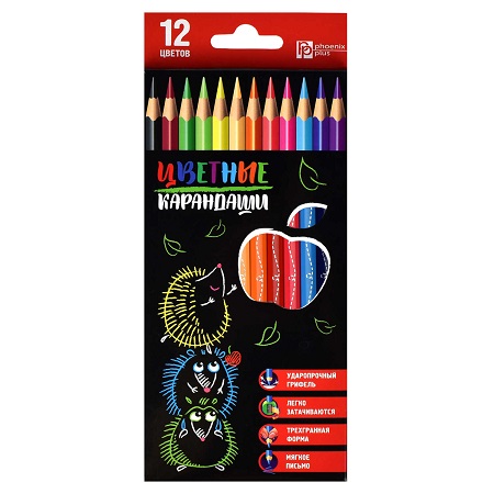 Карандаши 12цв "ЕЖИКИ С ЯБЛОКОМ" трёхгранн., деревян.корпус 58578