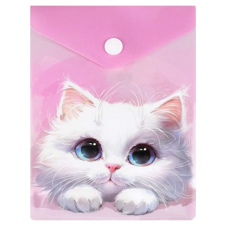 Папка на кнопке А6 БЕЛЫЙ КОТ пластик 72384 1/12