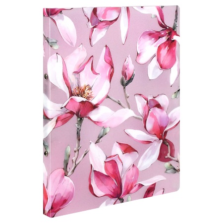 Папка на 2 кольца 30 мм, РОЗОВАЯ МАГНОЛИЯ (полипропилен, формат А4, 24x31x2 см, одно отделение, кольцевой механизм, глиттер,) 72243