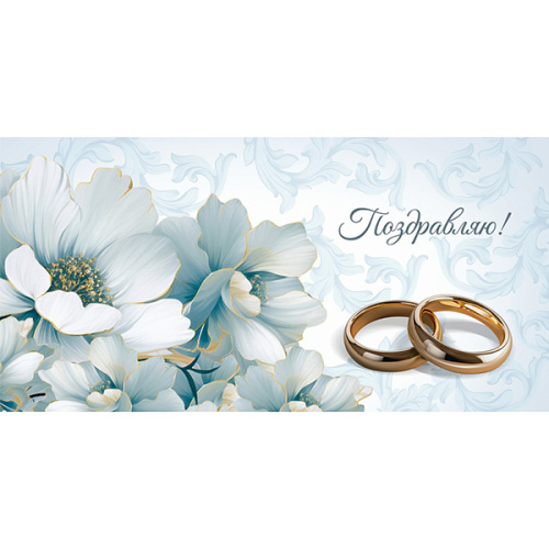 Конверт для денег Свадьба- Поздравляю, Нежные цветы, золото/серебро ЗСС-0060