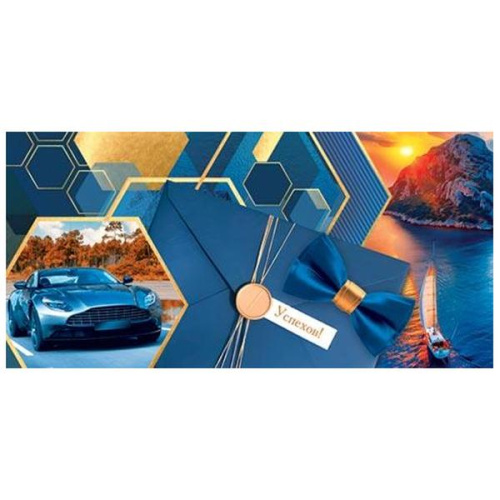 Конверт для денег Мужской- Успехов! Авто, океан, гора, без отделки 4-15-1800